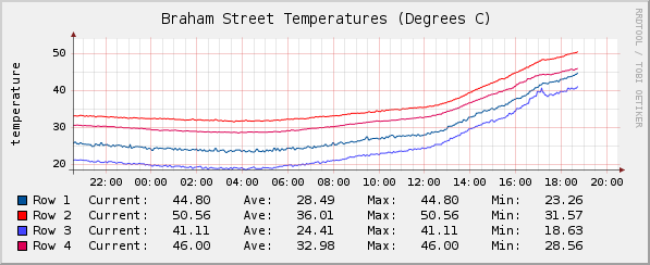When the temperatures reached a certain level, servers began automatically going critical and shutting down to prevent hardware failure. As many of you might have guessed, 1U-2U servers really are not built to sustain operation in a remotely warm room, and running without proper air conditioning can cause some pretty serious problems!